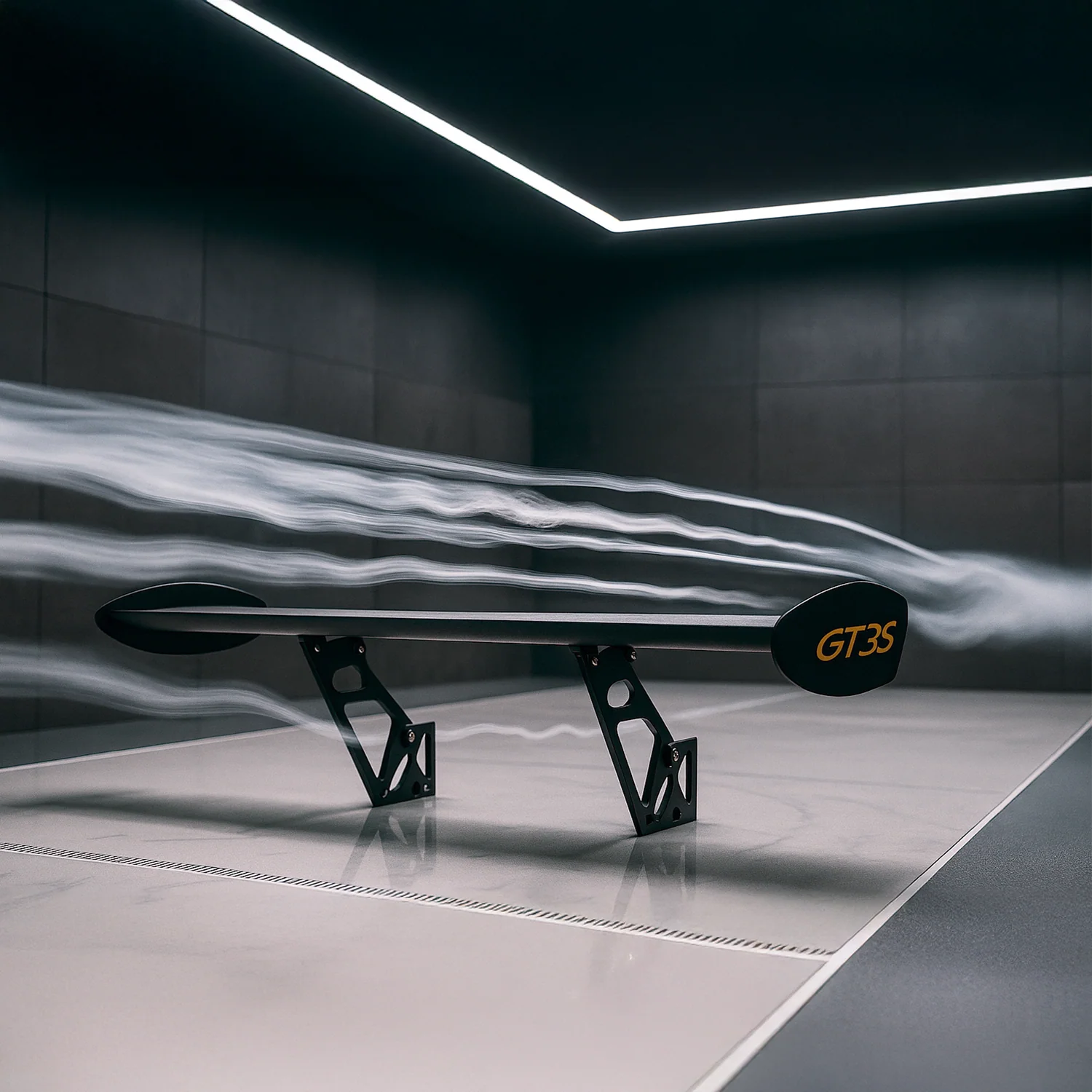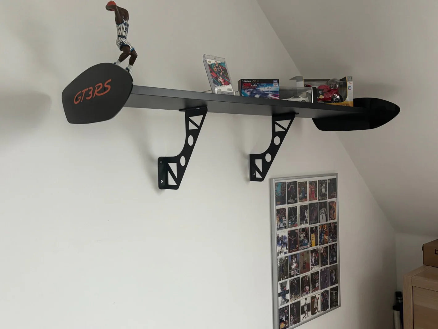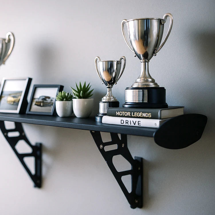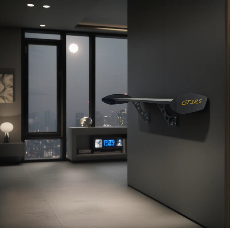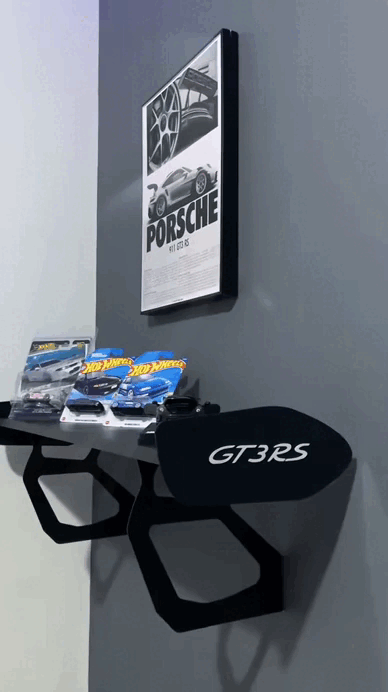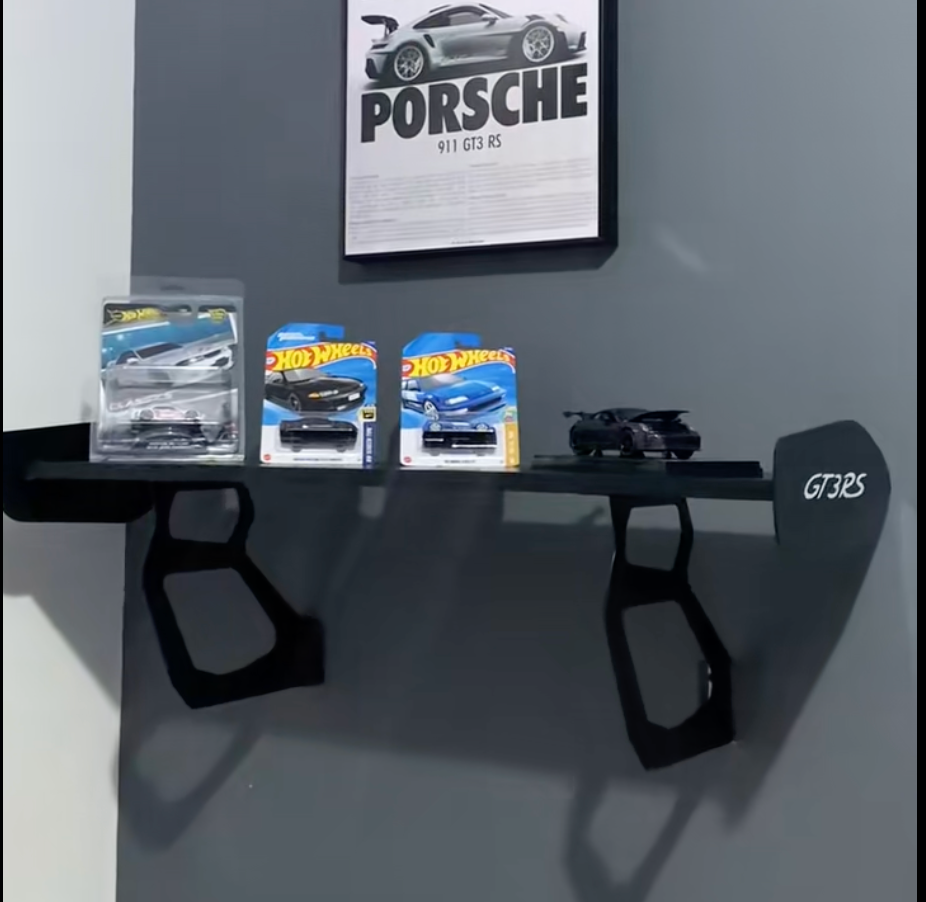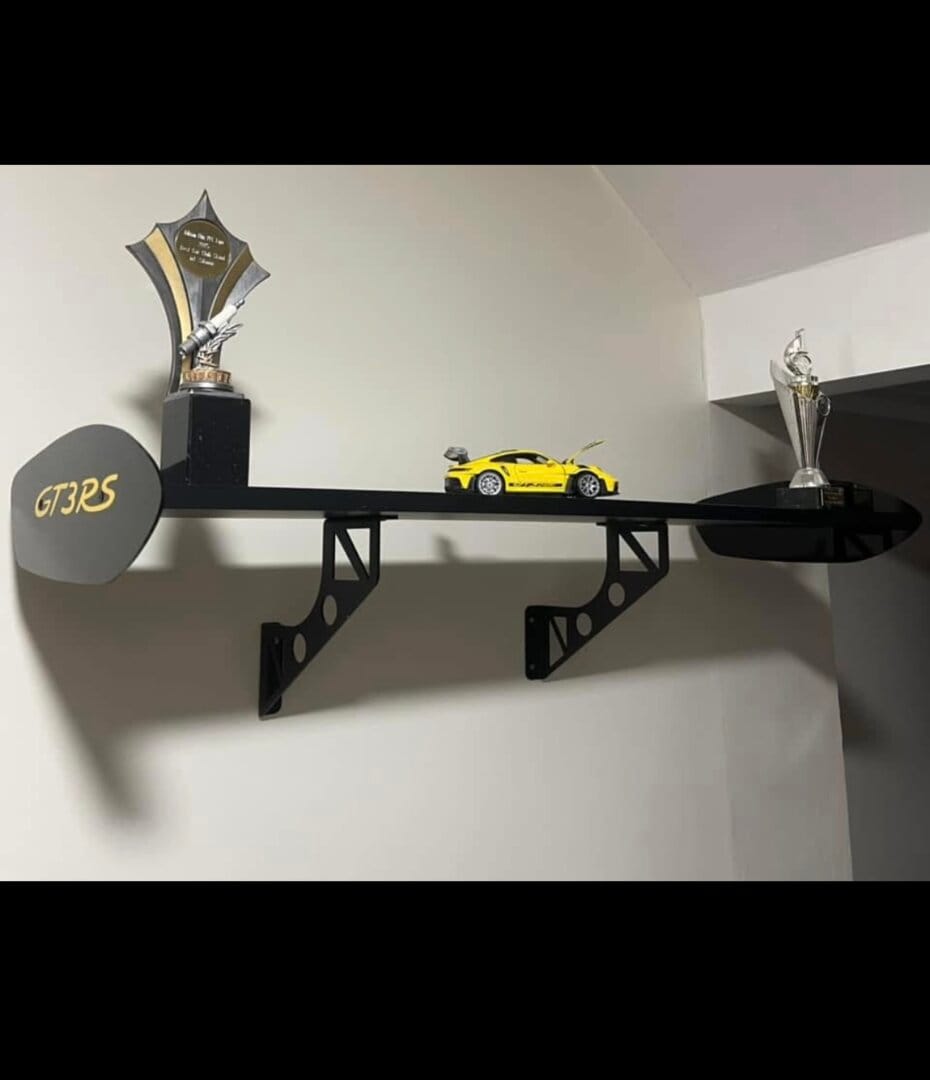 Dieses Regal wurde aus denselben Materialien hergestellt, die auch für die Herstellung des echten Spolers des Porsche GT3 RS verwendet wurden. Dieses Regal fügt sich perfekt in jede Einrichtung ein und fungiert gleichzeitig als Kunstwerk.